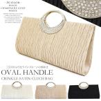 パーティーバッグ クラッチバッグ 結婚式 バッグ 3way クリンクルサテンタイプラインストーン煌めくオーバルハンドル付クラッチバッグ パーティーバッグ