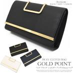 たためるGOLDの持ち手とチェーンがついてクラッチバッグ・ハンドバッグ・ショルダーバッグの3way仕様 本格リッチ仕様なGOLDディテールがアクセント きちんと感のあるしっかりしたフェイクレザーのクラッチバッグ ◆サイズ 幅:27.5cm 高さ:16cm マチ:6cm 持ち手:幅10cm ◆付属品:チェーン120cm ※上記サイズはすべて【平置き採寸】です。多少の誤差はご了承下さい。 [関・・・