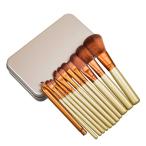 ・メイクアップ ブラシ 12本 セット ・セット内容:ブラシ×12種類、ケース×1 ・サイズ:毛の長さ/2.5cm、ブラシ長さ/15cm、ケース/15×9×3cm ・材質:ブラシ/木、人工繊維、ケース/鉄 ・カラー:ゴールド